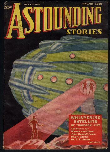 The January 1938 issue of Astounding. The cover has nothing to do with Galactic Patrol , but is included here for reference purposes. Art by H. W. Wesso.