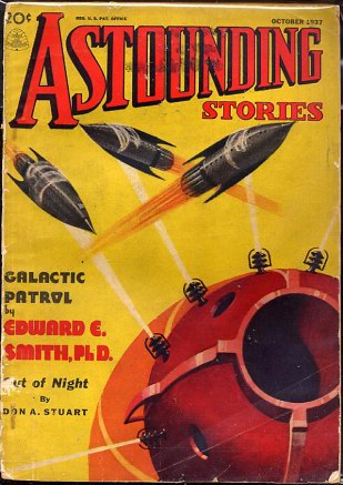 The November 1937 issue of Astounding. The cover has nothing to do with Galactic Patrol , but is included here for reference purposes. Art by H. W. Wesso.