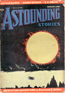 The February 1938 issue of Astounding. The cover has nothing to do with Galactic Patrol , but is included here for reference purposes. Art by Howard V. Brown.