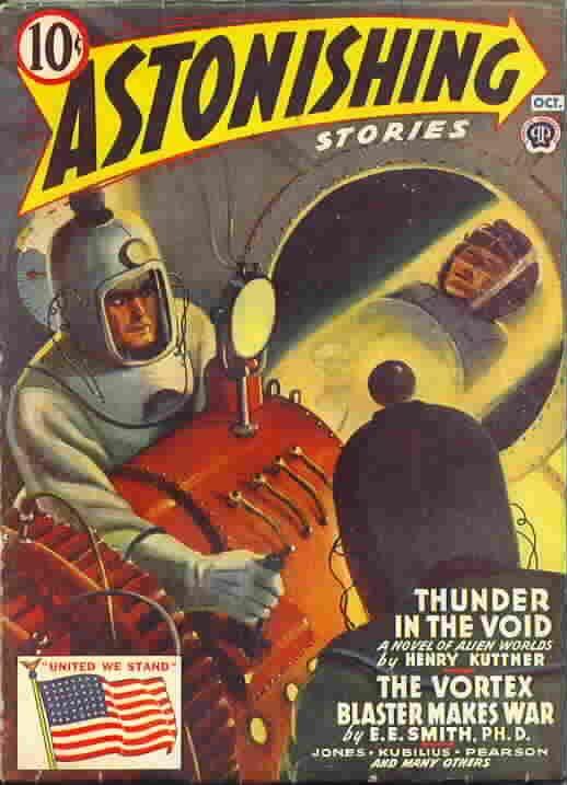 The October 1942 issue of Astonishing Stories. "The Vortex Blaster Makes War," the third and final "Vortex Blaster" story, was published here.